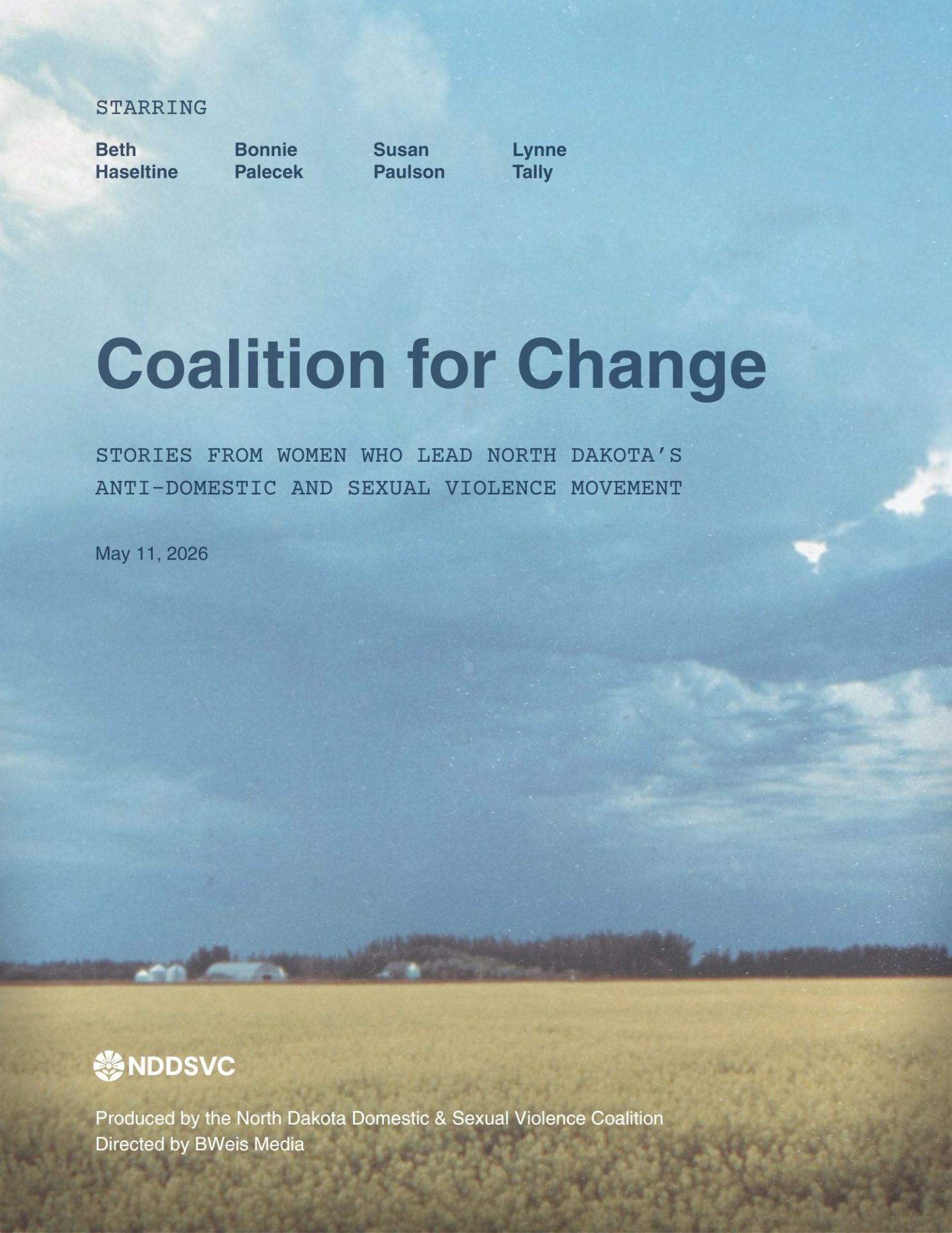 Featuring NDDSVC’s founding Executive Director, Bonnie Palecek, and other leaders of the movement, Coalition for Change is a reflection on our grassroots origins and where we are today. The 30-minute short film is both a historical record and a means of passing the work along to a new generation of leaders.